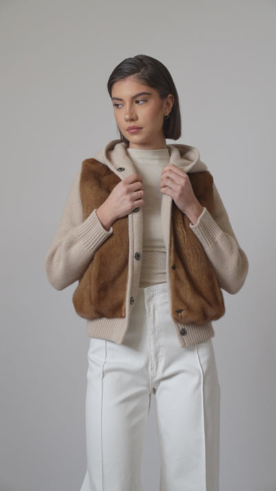 Giacca in cashmere Cariaggi con visone, chiusura con bottoni, lavorazione verticale, double face. Disponibile in altri colori.