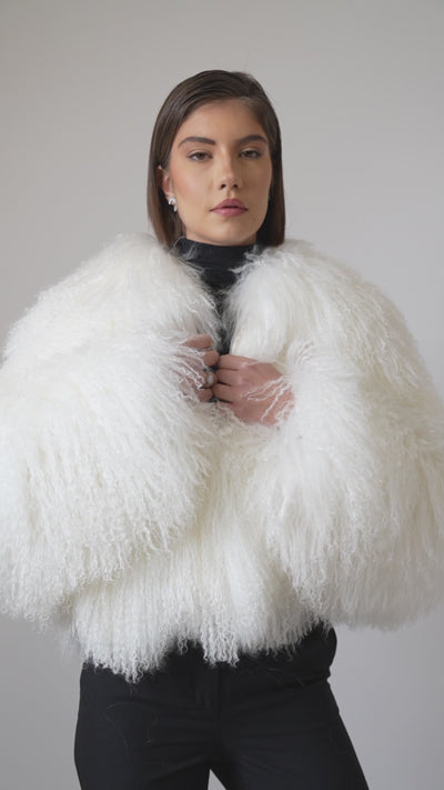 Giacca in mongolia, chiusura con ganci, lavorazione verticale. Disponibile anche in altri colori.